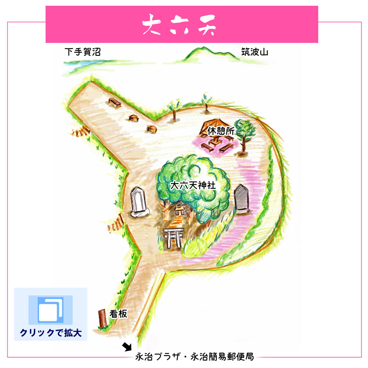 | パークガイド | 大六天神社 散策路 休憩所 散歩路 (階段) 駐車場 |